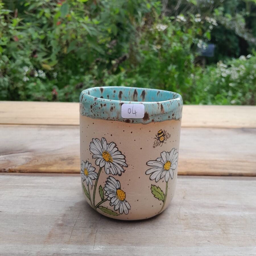 Mug has been made by hand using a slab of clay.   Underglaze decoration is printed here at Meraki, transferred to the clay and hand coloured.