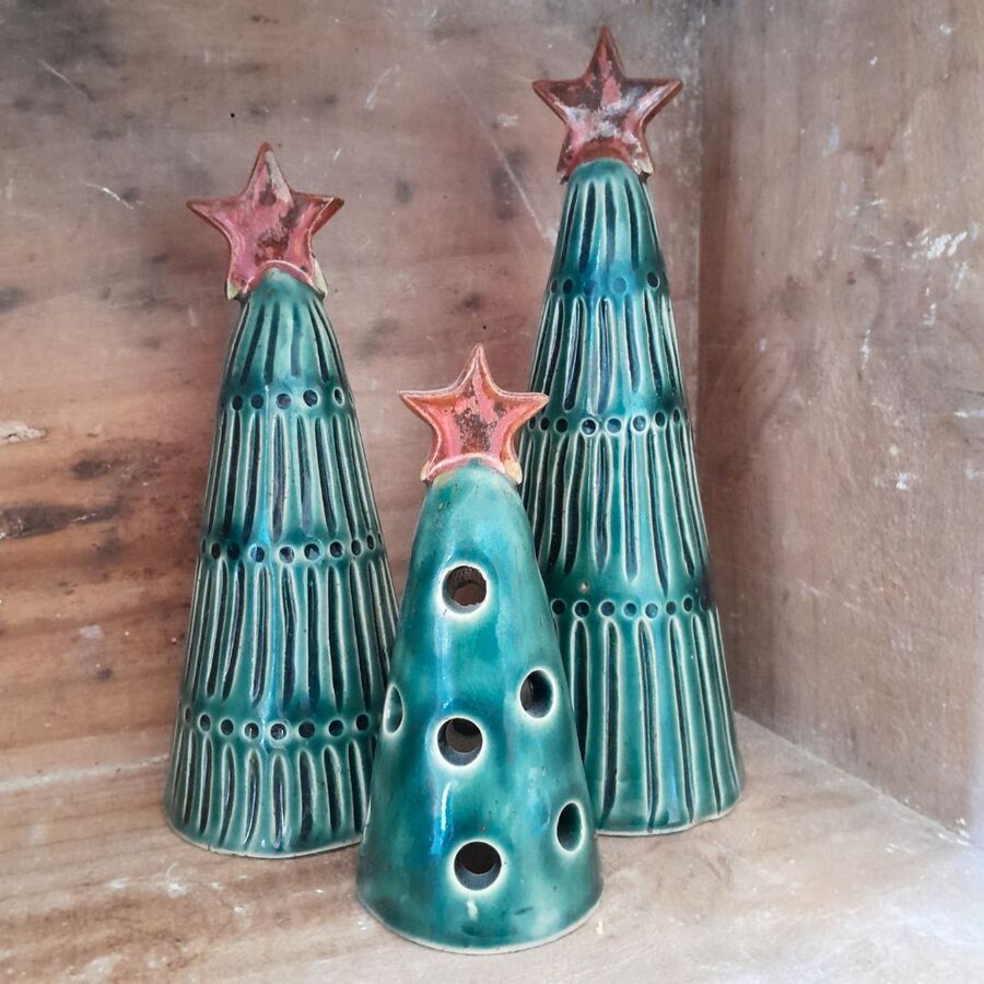 Set to Stoneware Christmas TreesLarge 19cmMed 17cmSml 13 cm