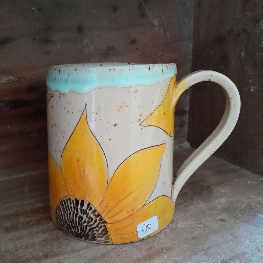 Hand Carved and Painted Sunflower Mug - Wide Bum