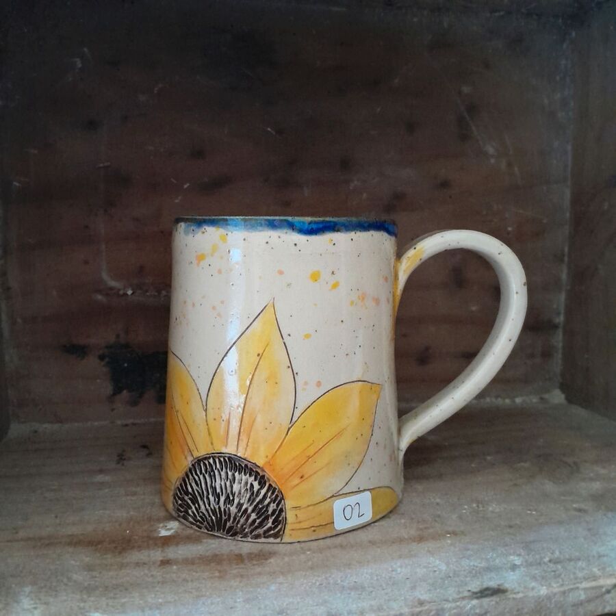 Hand Carved and Painted Sunflower Wide Bum Mug 02