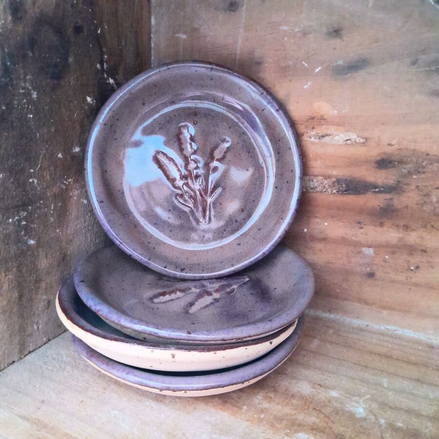 Stoneware dish with Lavender Stamp10cm diaPerfect as a jewellery, spoon, anything dish