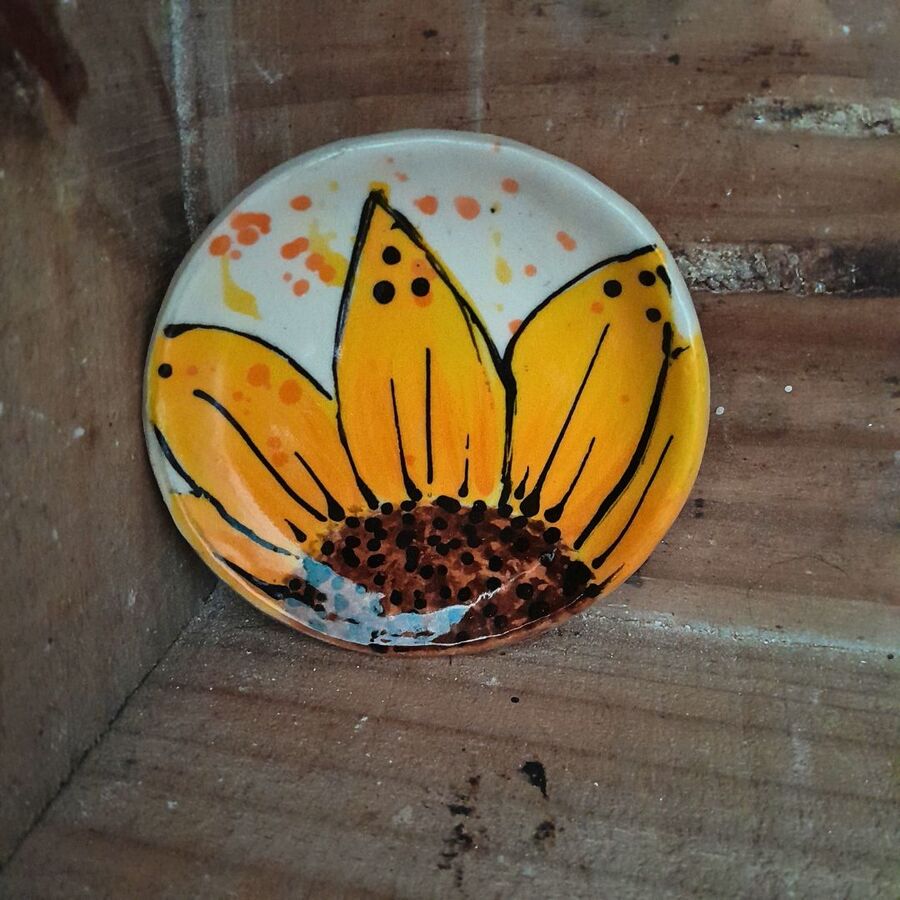 Hand painted Stoneware sunflower dish