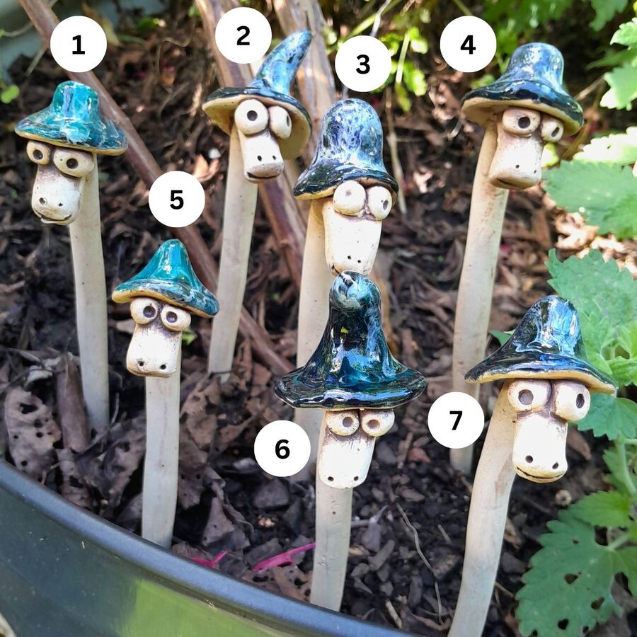 These quirky characters were super hard to photograph. Each has a slightly difference expression and will had a will quirk to any pot plant. Can be used indoors or out.